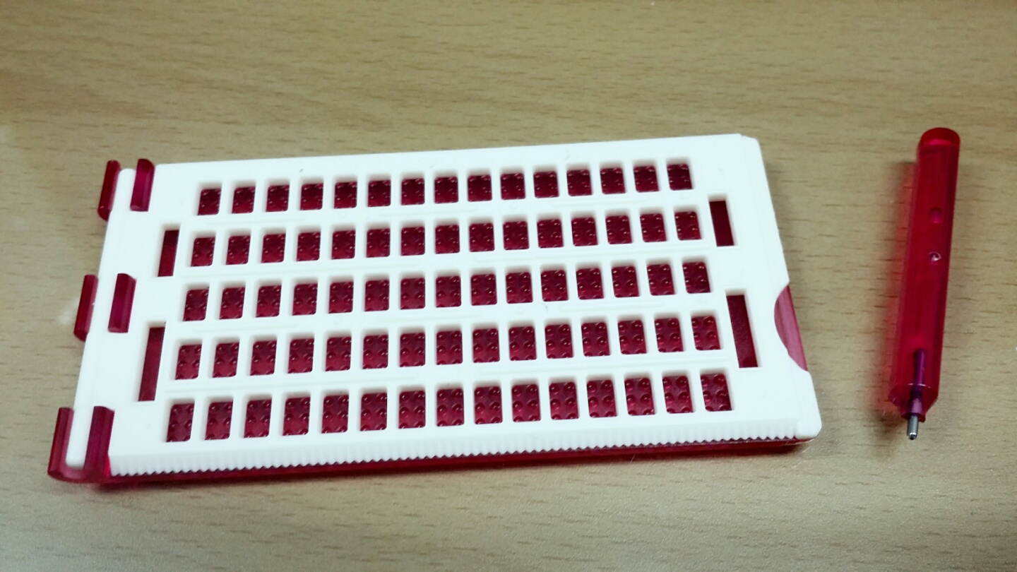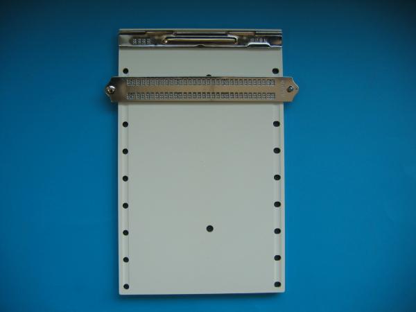 점자판 1/4정도 되는 크기로, 휴대시 점자용지를 고정시켜 점자를 용이하게 찍을 수 있다.